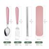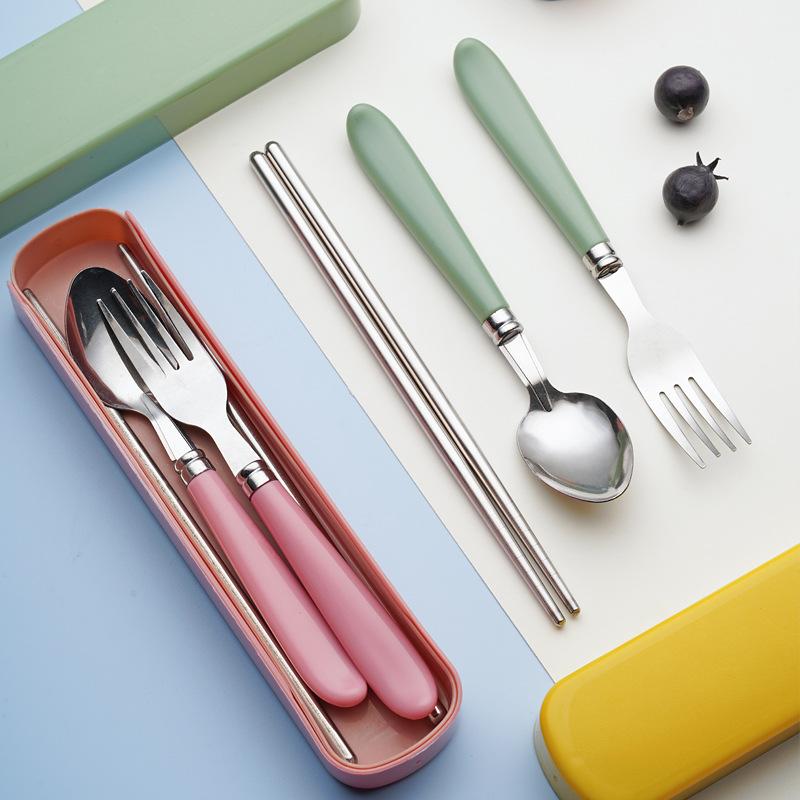Stainless steel portable tableware set, plastic handle travel portable three-piece set, student canteen spoon fork chopsticks
