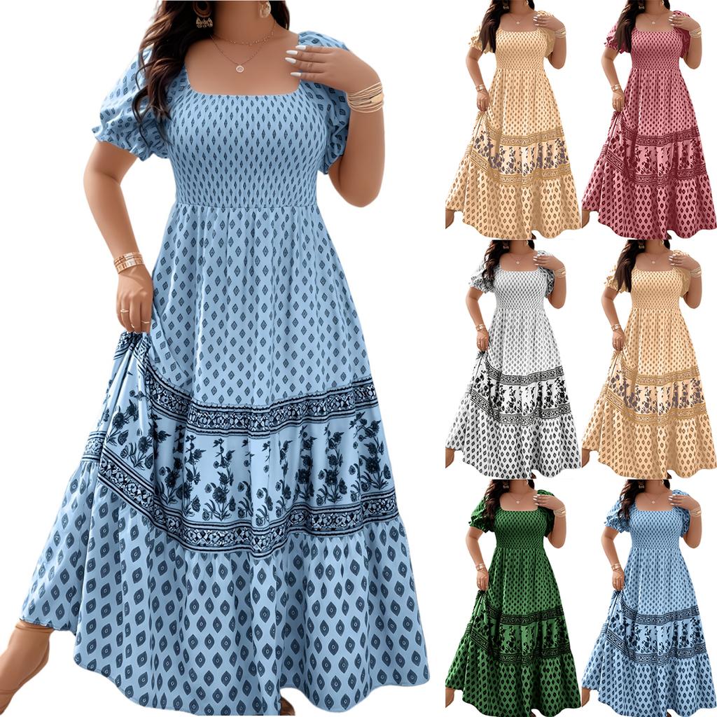 Sukienka damska Casual Zwiewne sukienki Dekolt okrągły Wakacje Boho Plaża Letnia sukienka