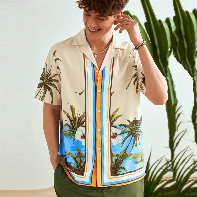 2026 New Fashion Summer Seascape Print Shirt Men's Summer Short-Sleeve Shirt for Home Summer Outfit for Vacation and Travel