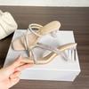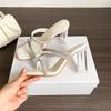 Wersja ze skóry owczej nowych wybuchowych kryształowych sandałów na wysokim obcasie, damskie lato 2025, nowe sandały na grubym obcasie w stylu wróżki z cyrkoniami