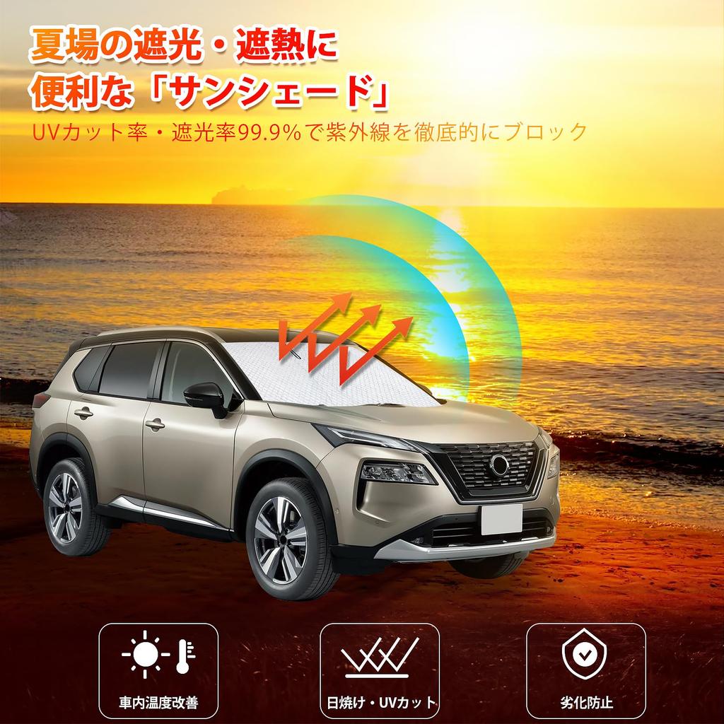 [Sun Protection & Privacy] By covering the entire windshield, this sunshade blocks sunlight from reaching the windshield, preventing the interior temperature from rising and the dashboard from fading. It also helps protect your privacy when sleeping in your car or taking a nap. Furthermore, our windshield sunshade is treated with a special coating to reduce light leakage through pinholes, providing a better driving experience. It is an essential sun protection item for hot weather.
