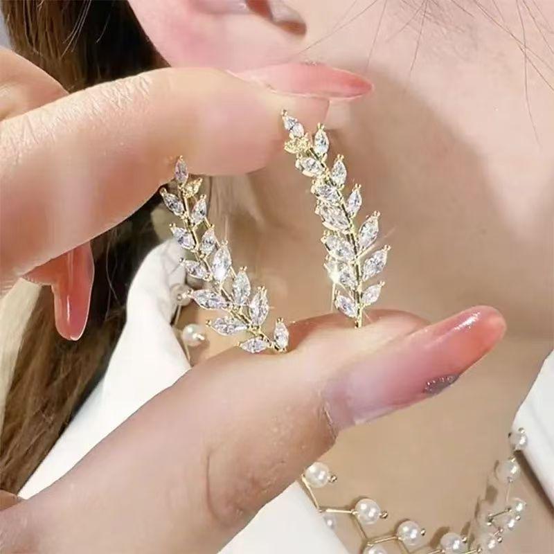 Elegant Zircon Wheat Ear Leaf Stud Earrings: Exquisite Design for Versatile, High-Grade Style