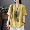 Cotton and Linen T-shirt Women's Short-sleeved Summer New Style Women's Top Loose Retro Printed Large Size
