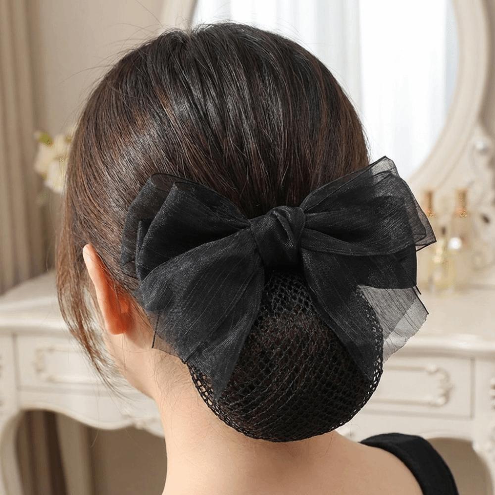Convenient Bowknot Net Bun Snood Vintage Hair Clips Sweet Hair Bun Cover Women Spring