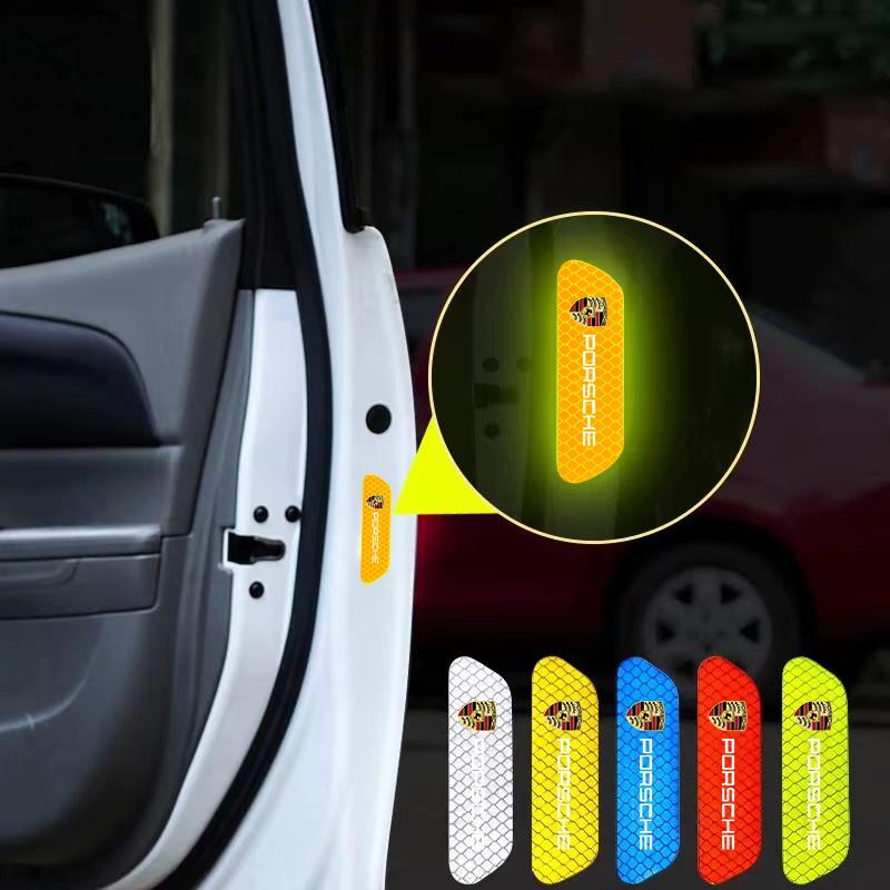 4Pcs Car Door Sticker Safety Warning Reflective Mark For Porsche Cayenne Panamera Macan 911 718 Taycan Boxster Cayman 918 Pajun
