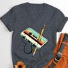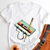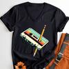 Vintage 80s Cassette Tape Pencil Print T Shirt Summer New Women Classics VNeck Tshirts Retro Throwback Music Lover Gift Tshirt