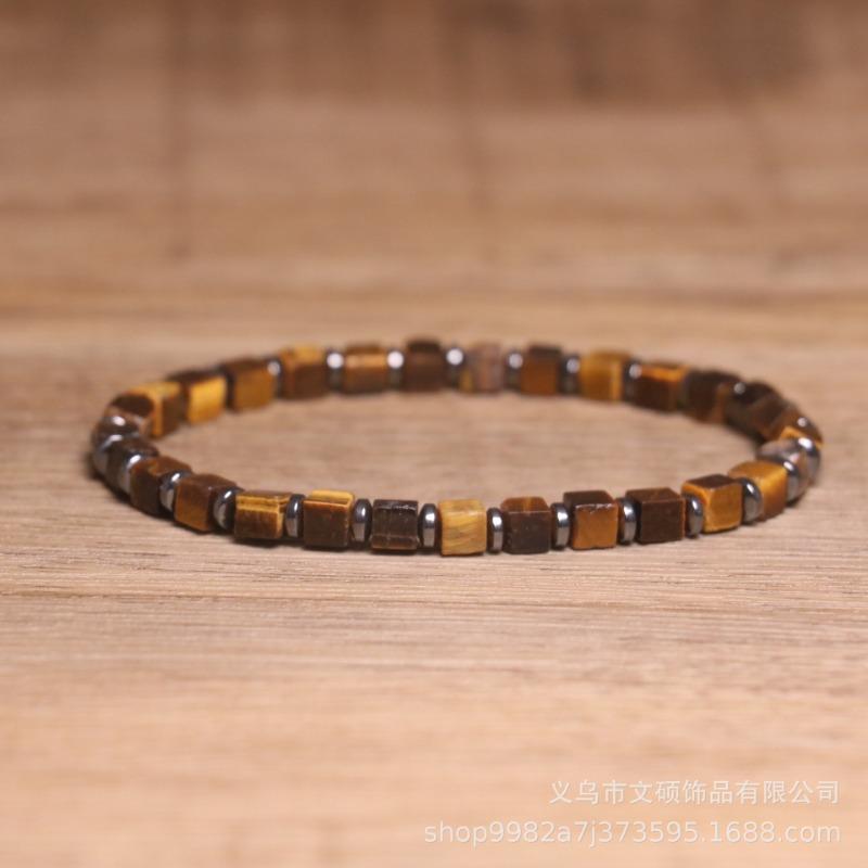 Bransoletka z kwadratowych koralików Tygrysie Oko – Akcent ze Stali Nierdzewnej Minimalistyczna Biżuteria, Prezent na Odwagę i Ochronę dla Mężczyzn i Kobiet