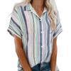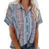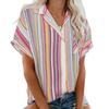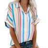Women Casual Stripe Print V-neck Pocket Short Sleeve Tops Blouse T-shirt
