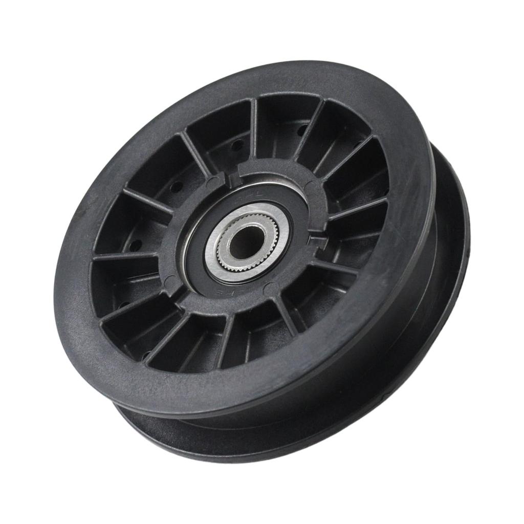 Designed with 3/8" inner diameter, 4-1/3" outer diameter, and 1-1/5" height, this flat idler pulley provides consistent belt tension, reduces slippage, and helps maintain optimal deck performance.