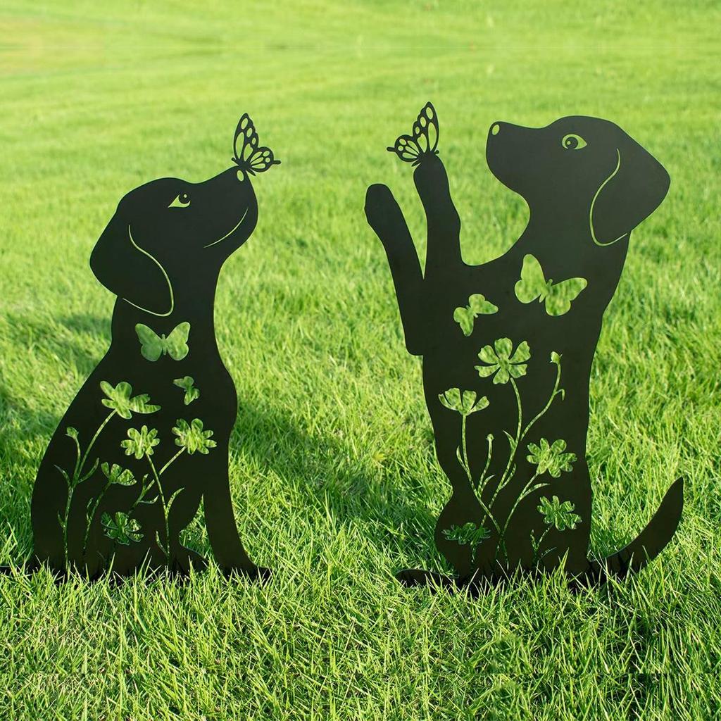 Mały piesek sylwetka ozdoba ogrodowa: Pusta Dekoracja Trawnikowa z Żelaza.