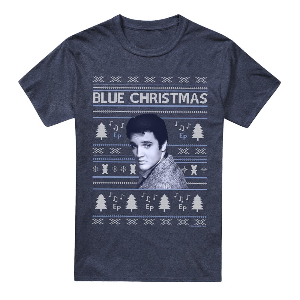 Elvis Presley Unisex Adult Blue Ugly Christmas Fair Isle T-Shirt