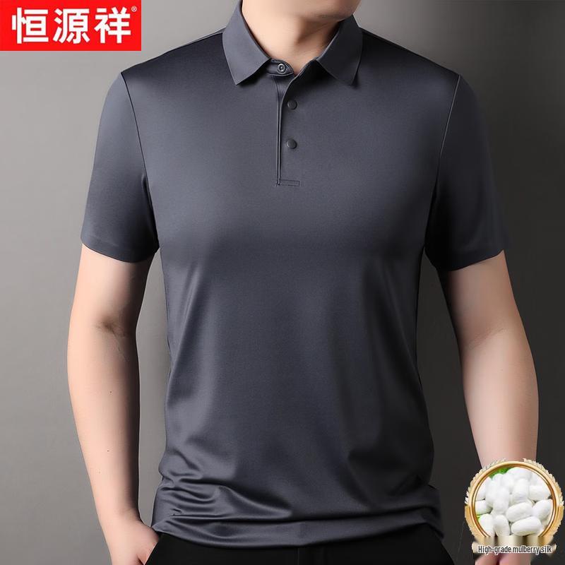 Hengyuanxiang Men's Cooling Mulberry Silk Blend Polo Shirt
