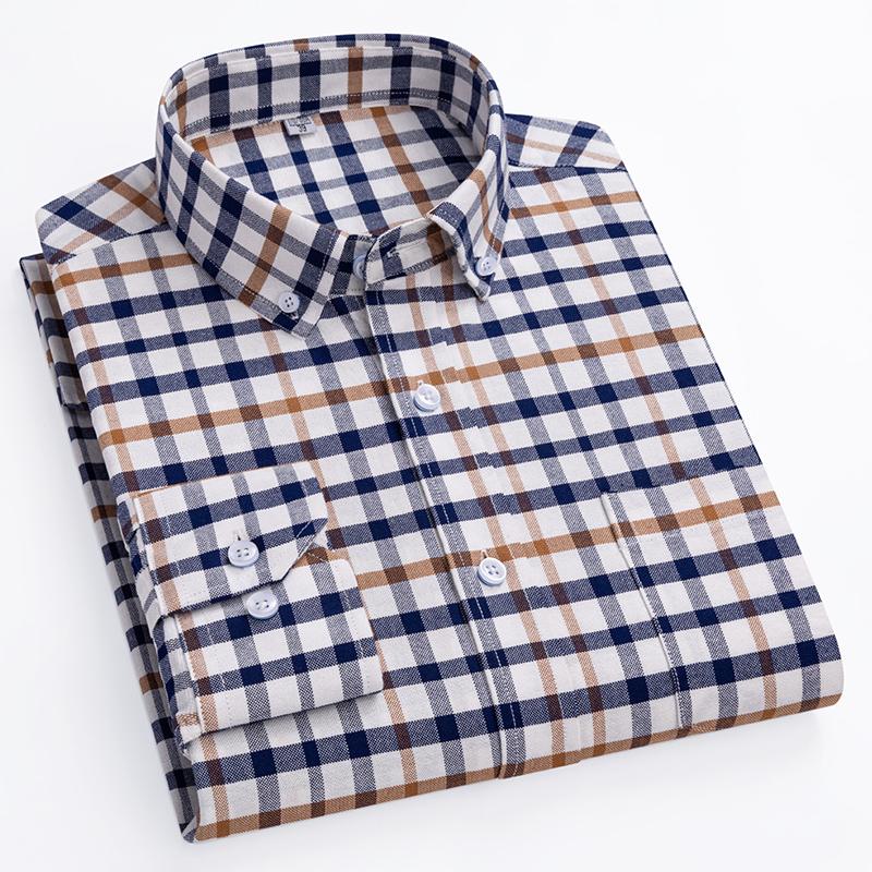Koszule męskie Oxford z czystej bawełny, z długim rękawem, łatwe w pielęgnacji, z kołnierzykiem zapinanym na guziki, klasyczne, męskie, w kratę, regularny krój, zima, wiosna