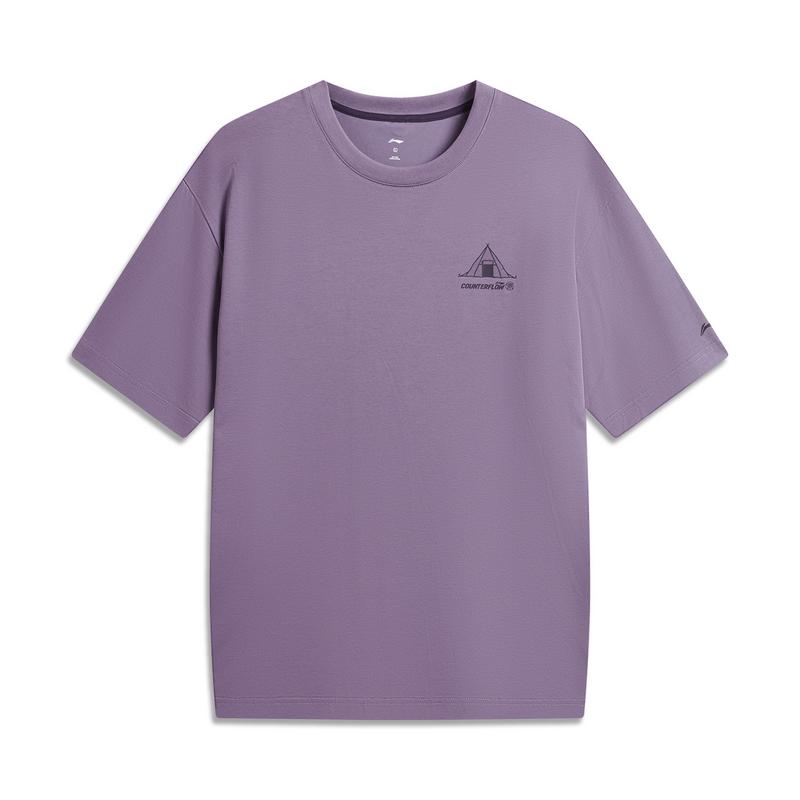 Li Ning Outdoor CF Moisture-Wicking Comfortable Stretch Loose Round Neck Short Sleeve T-Shirt Unisex tops Mineral-Purple ATSW401-5