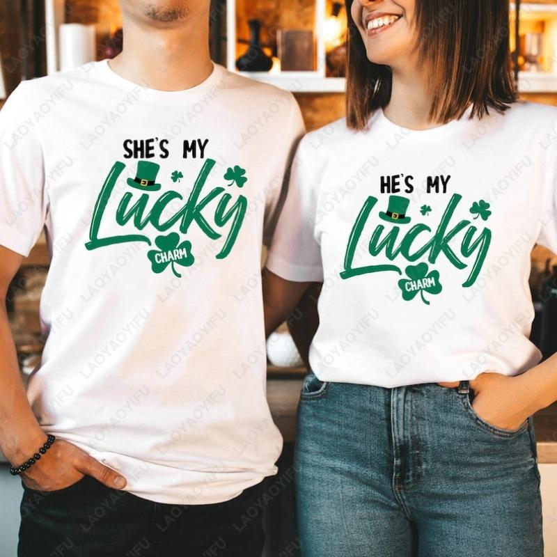 My Lucky Charm His and Hers Matching Unisex Cotton Tshirts Fun Couples Outfit St Patricks Day Tops Husband Wife Lovers Clothes