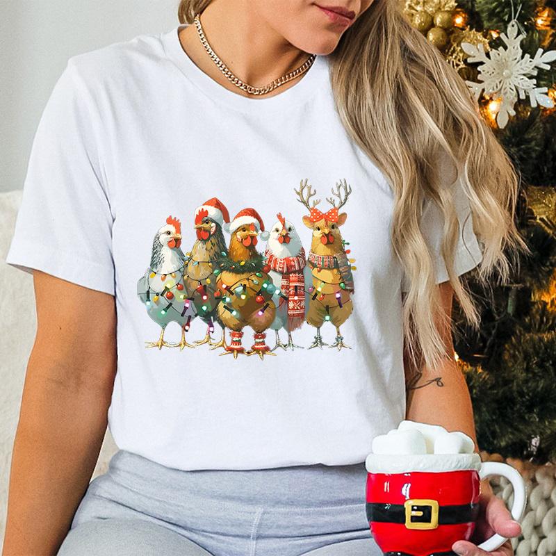 Festive Fashion Tshirt Women Merry Christmas Chicken Cartoon Tshirts Country Life Lovers Christmas Party Gift Essential Tops