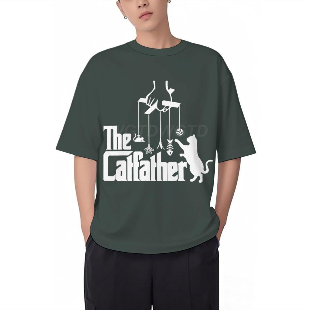 Vintage The Catfather Print T Shirt Men Fun Animal Cat Streetwear Short Sleeve Crewneck 100 Cotton Tshirts Fashion Kitten Tees
