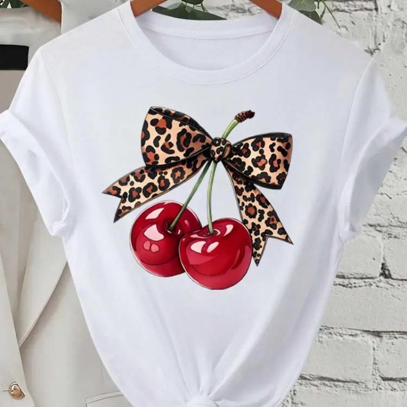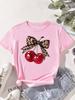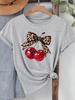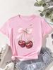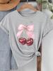Fashion Lovely Cherry Print TShirt Short Sleeve CrewNeck Casual Commuter Tops for Summer Spring Womens Clothing Otaku Tees
