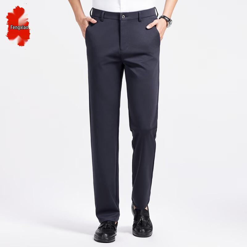 Fengxiao Men's Business Casual Straight-Leg Trousers