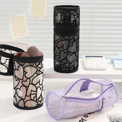 Love Heart Mesh Pencil Case Clear Mesh Makeup Pouch Colorful Mesh Storage Bag Stationery Holder