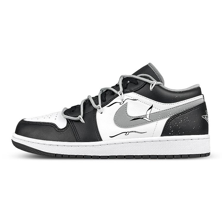 Jordan Air Jordan 1 Low Vintage Basketball Shoes Unisex Black White Gray 553558-040(Team47-AJ)