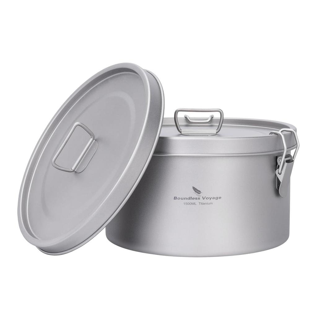 The Boundless Voyage titanium multi-cooking pot is a versatile cooking utensil available in two sizes: 900ml and 1500ml. It comes with two types of lids: a tight-fitting lid and a lid with a steam vent, allowing you to choose the best option for your needs. Made from pure titanium, it is ultra-lightweight, highly durable, and rust-proof. In addition to being used as a storage container, it is also ideal for steaming and making soups, making it useful for a wide range of cooking situations, from outdoor camping to home cooking. The body is only 0.5mm thick, and the lid has 2mm ventilation holes, allowing for efficient cooking. The 900ml type is compact, measuring 14.8cm in diameter and 7.9cm in height, while the 1500ml type is compact, measuring 16.6cm in diameter and 9cm in height. It is easy to carry and perfect for picnics and outdoor activities. It is also refrigerated, preserving the freshness of ingredients, making it a practical item that can be used in a variety of cooking situations.