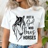 Tylko Dziewczyna Kocha Konie Nadruk Damski T-shirt Damski Dzikie Konie Moda Streetwear Topy Vintage Zwierzęta Damskie Koszulki z Krótkim Rękawem
