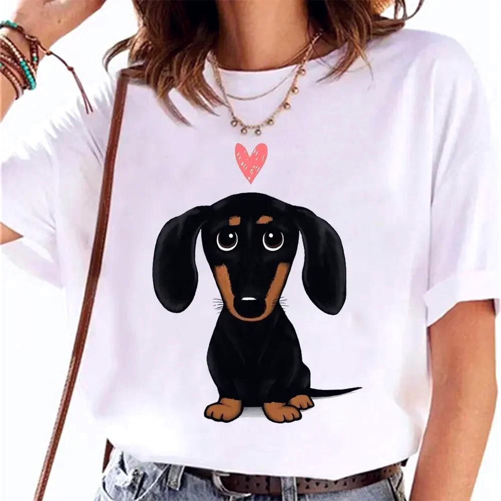 New Black and Tan Dachshund with Heart Retro Y2K Funny TShirt FeUnisex Summer Cute Cartoon Wiener Dog Fashion Tee Casual Tops