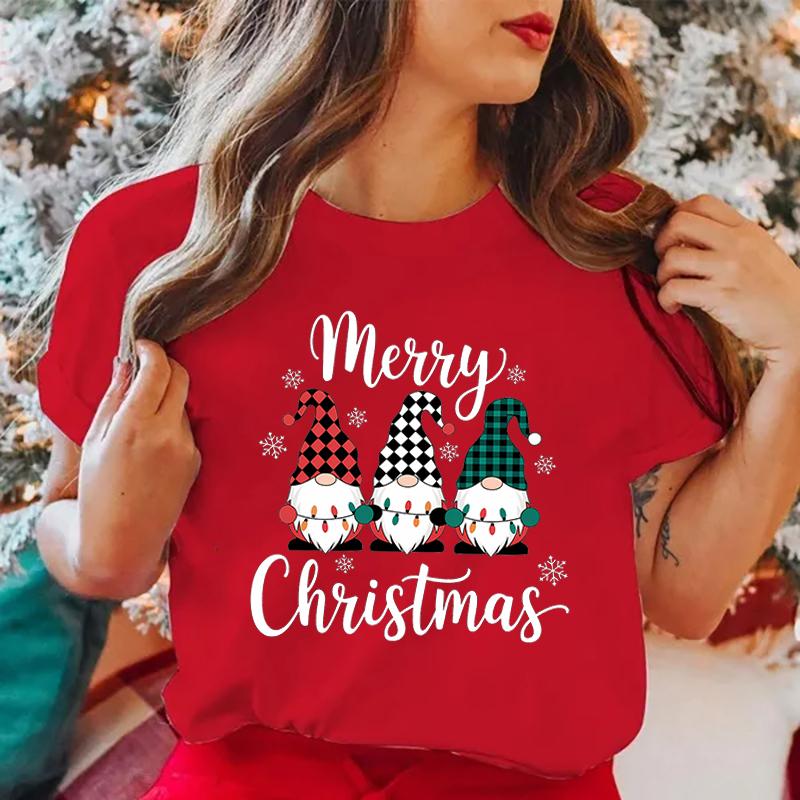 2025 Christmas Gnome Merry Christmas Printing T Shirt Women New Tops Tees Fashion Harajuku Kawaii Tshirt Womens Y2K Clothing