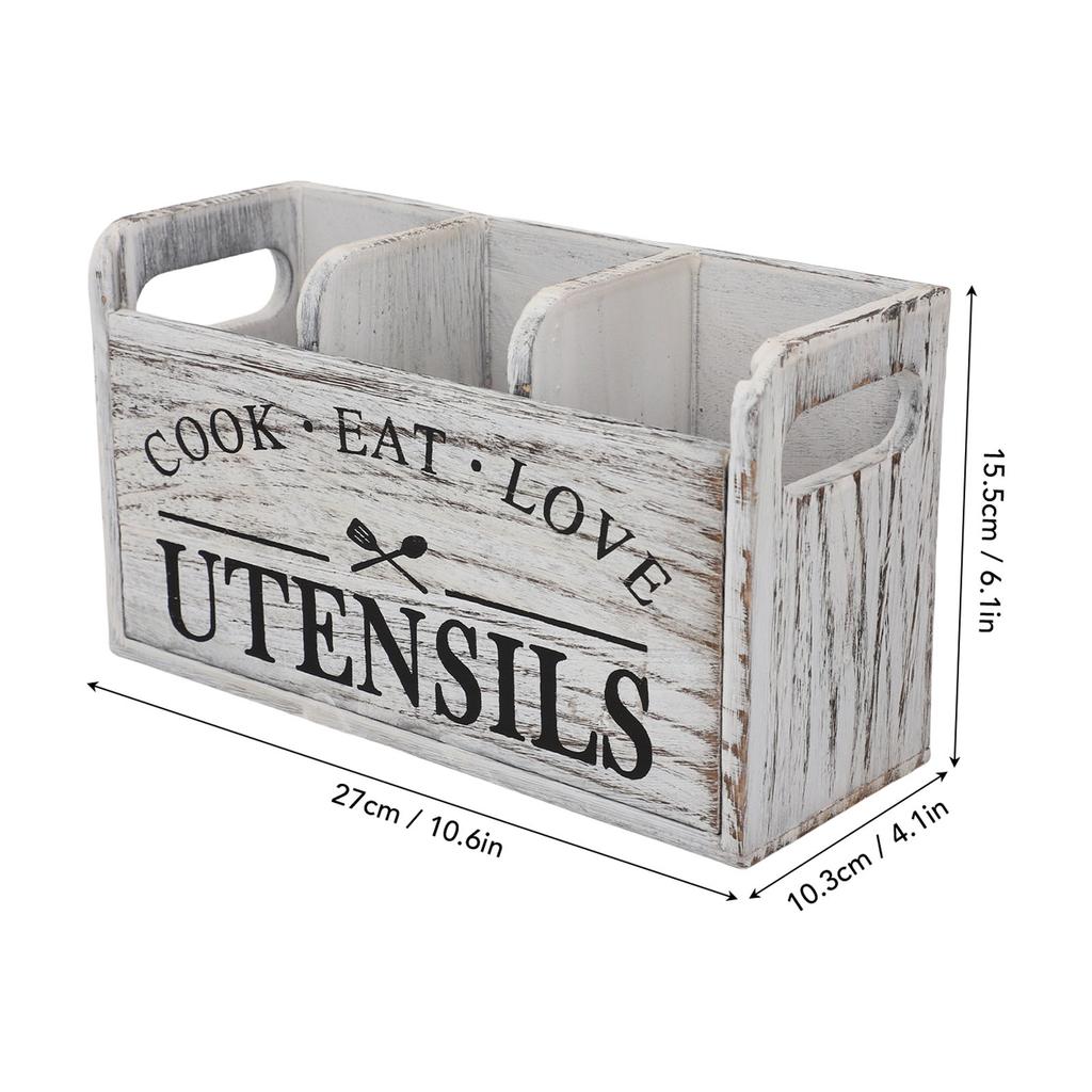 Pojemnik na przybory kuchenne Vintage Pudełko do przechowywania Drewniany organizer na sztućce na długie łyżki Szczypce Łopatki Widły