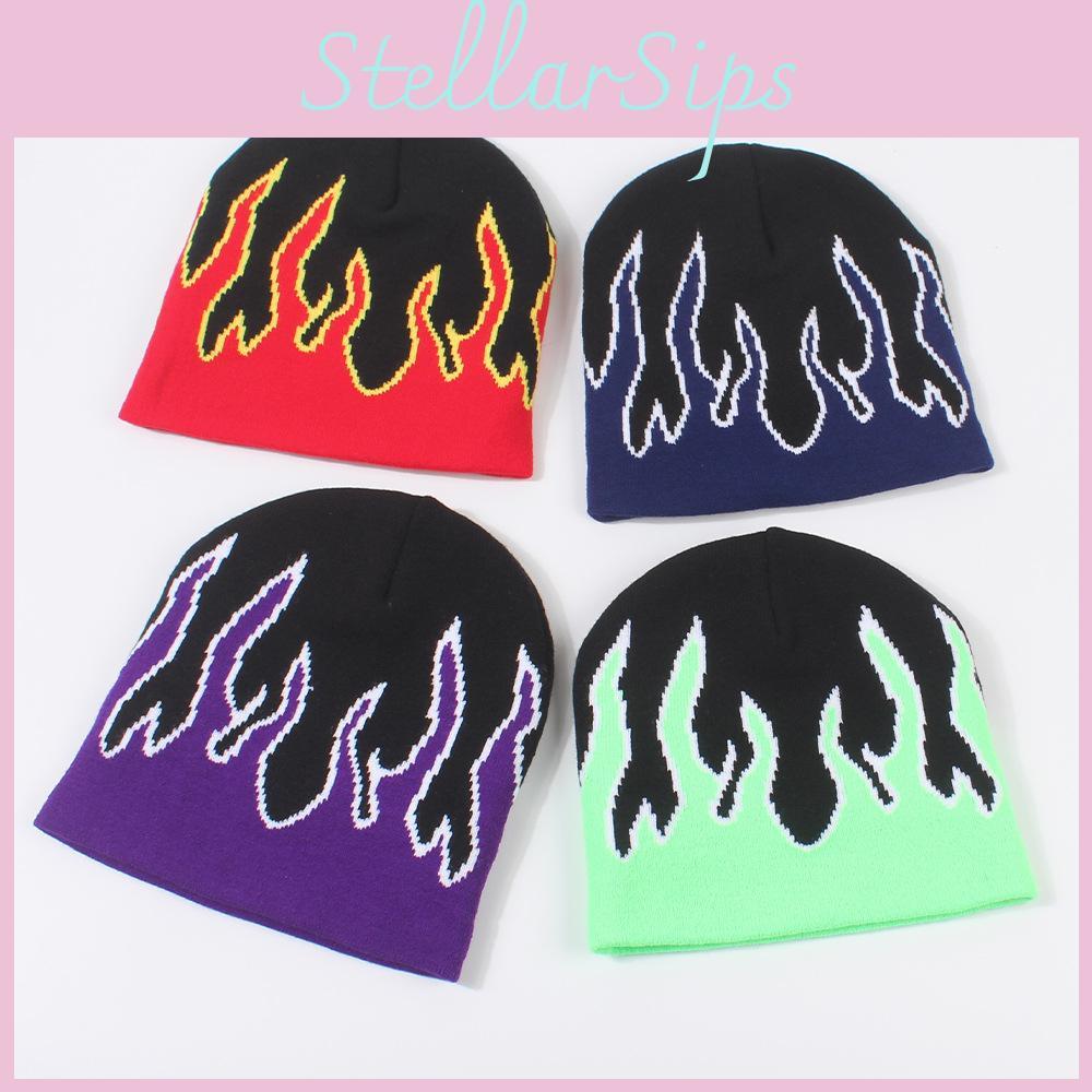 Winter New Flame Knit Hat Men's Hip Hop Street Outdoor Riding Cap Warm Knitted Hat