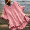 Plus Size Women's Solid Color Casual Short Sleeved Round Neck T-Shirt Ladies Ruffled Hem Women's Back Button Up Top