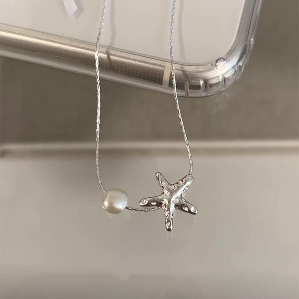 Summer Beach Silver Starfish Necklace New Clavicle Chain Women's Premium Sense Simple Design Necklace