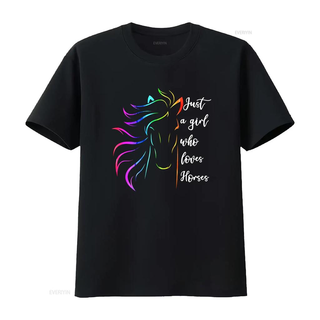 Just A Girl Who Loves Horses Horseback riding Cute Horse T Shirt vintage Washed Top For Everyday Wear Versatile streetwear Soft