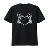 Womens T Shirt Skeleton Hands Love Heart Sign Bones Costume Funny Halloween Casual Tops Black X Large vintage Washed Stretched