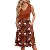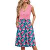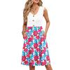 Kobiety Letnie Sukienki z Nadrukiem Bez Rękawów Codzienne Luźne Rozkloszowane Midi Sukienka Letnia Zapinana na Guziki z Kieszeniami