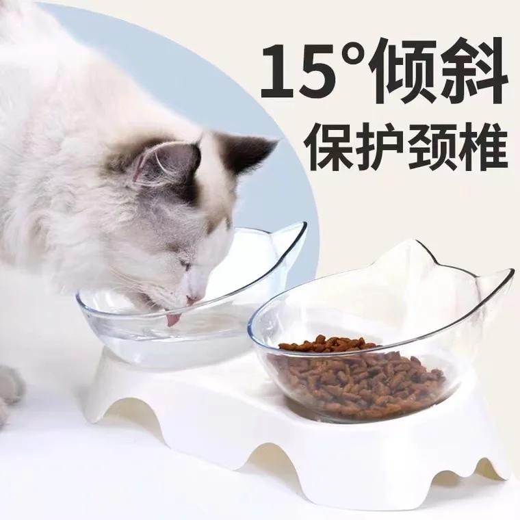 Cat Double Bowl Tilted 15 ° Neck Protection Anti-splash Dog Bowl Automatic Water Dispenser Pet Supplies
