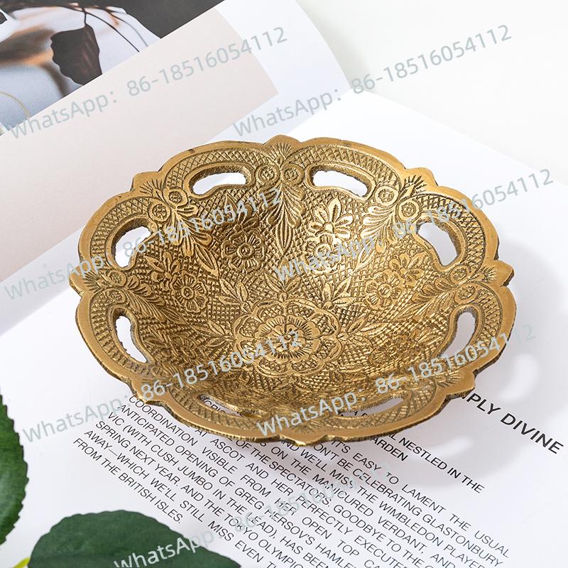 Wyposażenie w stylu europejskim Importowana Mosiężna Pusta Grawerowana Misa na Owoce Taca do Przechowywania Biżuterii Przekąsek Taca na Stolik Kawowy Stół Jadalny