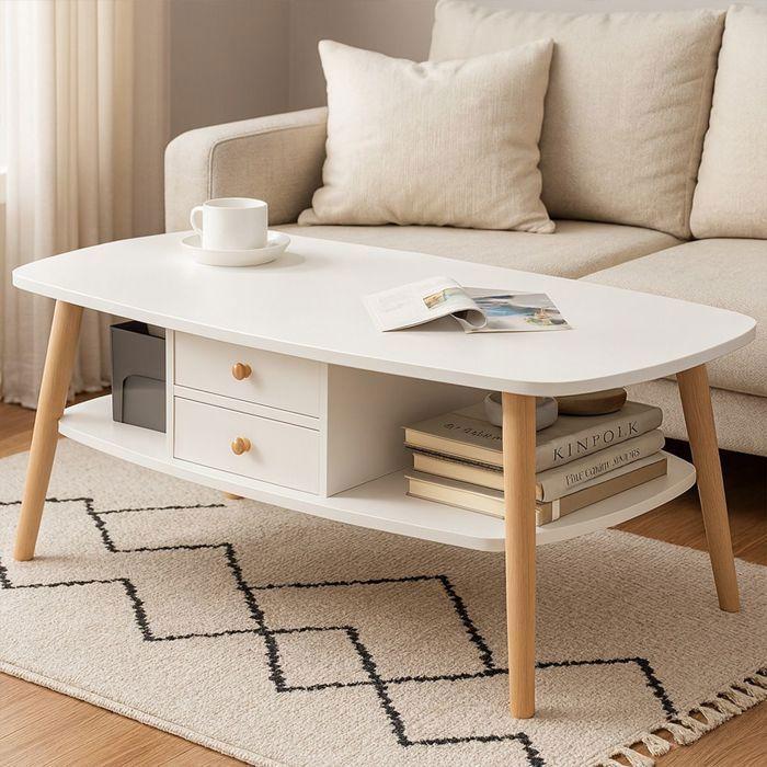 Stolik kawowy - Divit CM16 - Biały - 2 szuflady & półka - Blat 15 mm