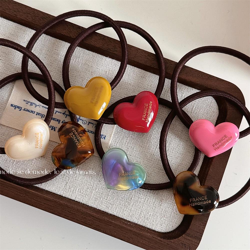 Gold Label Heart-Shaped Acetate Candy Color Hair Tie - High Elasticity, Cute High Ponytail Rubber Band