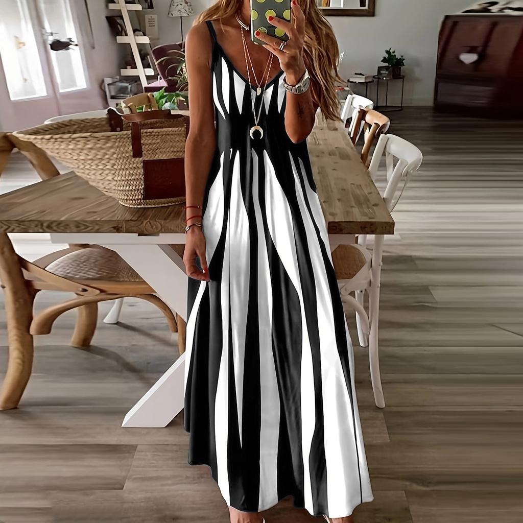 Women's Casual Dresses Summer Geometric Sling V-Neck Women's Dresses features: