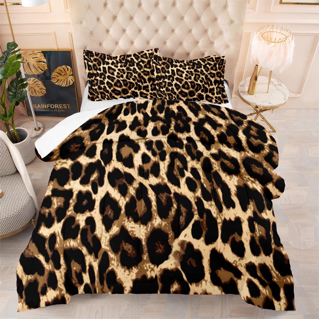 Animal Leopard Print Cow Print Quilt Digital Printing Feather Silk Cotton Quilt Fat Quilt Cover Three-piece Set