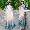 High-End Summer Women's Floral Dress V-Neck Stretch Plus Size Dress Slim Fit Long Dress