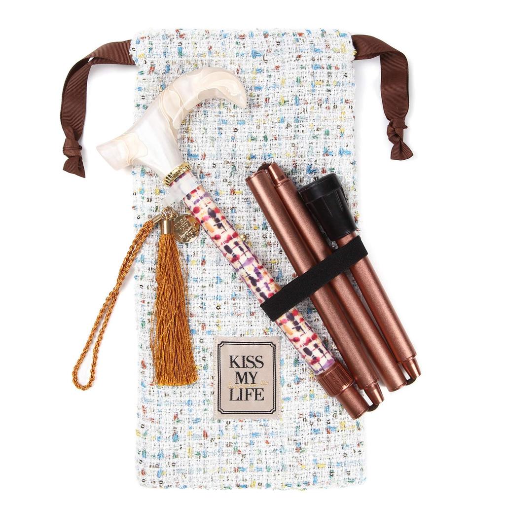 foldable walking stick for with embroidered LUXE Lightweight, women, pouch, (Sugar Brown) (kml130102d)