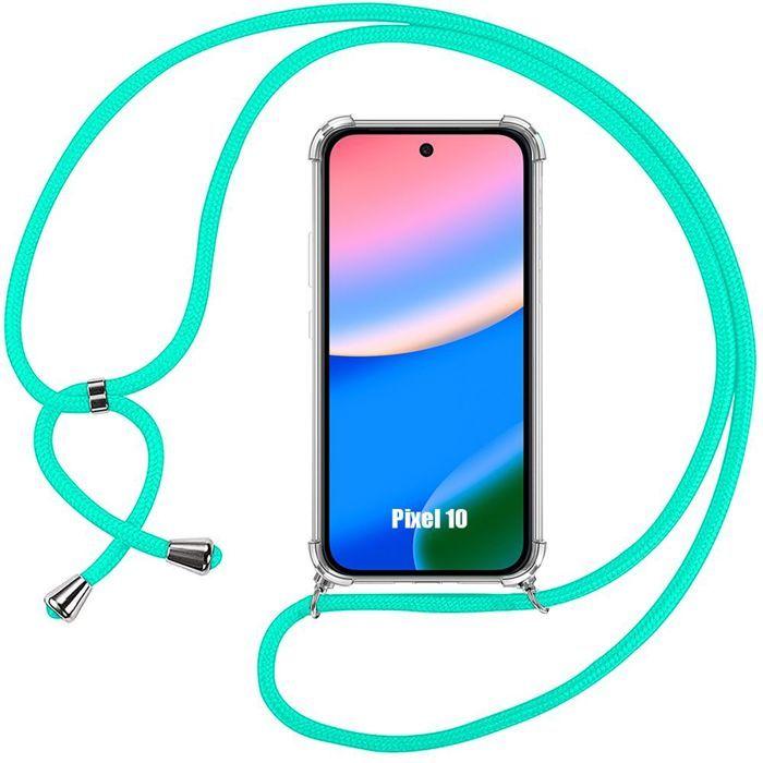 Coque pour Google Pixel 10, Silicone Antichoc Protection Transparente avec Cordon Turquoise