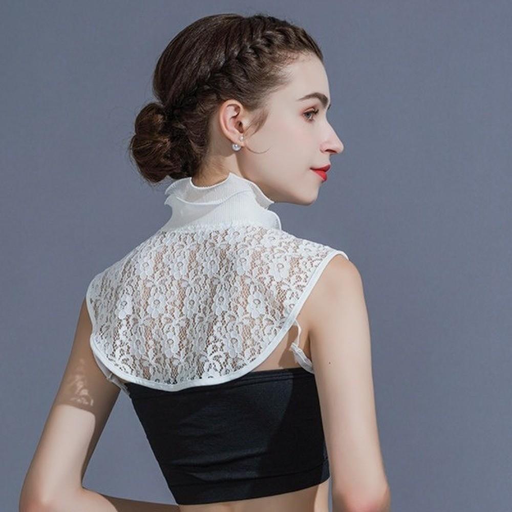 Pusta Kwiatowa Odpinana Sztuczna Koszula z Kołnierzykiem Łatwa do Dopasowania Regulowany Dekolt Koronkowy Klapy Połowa Koszuli Damska