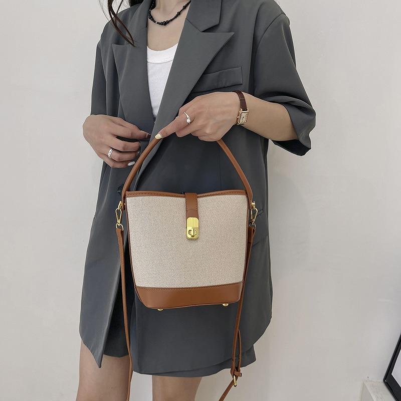 Torebka damska nowa modna przenośna torebka typu bucket niszowy design kontrastowe łączenie kolorów na ramię listonoszka