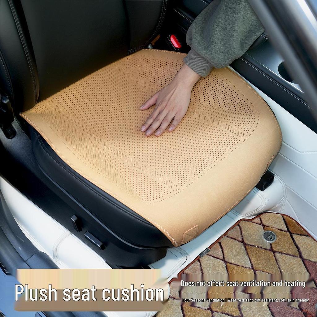 Breathable Suede Velvet Car Seat Cushion for Driver - Perforated, All-Season Cover