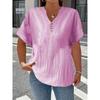 Moda Damska Wiosna i Lato Casualowa Jednolita Koszulka z Guzikami i Dekoltem V dla Kobiet