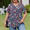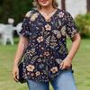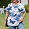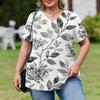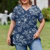 Damska Modna Codzienna Luźna Bluzka Plus Size z Krótkim Rękawem Elegancka z Dekoltem V Do Pracy